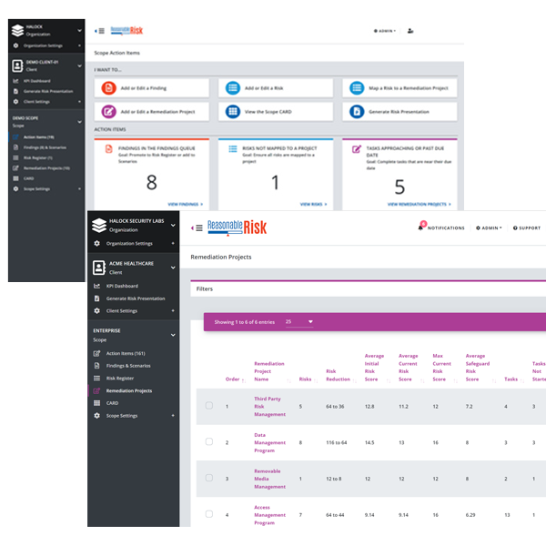 - Tracking risk score reduction across remediation efforts (connecting risk score management to project management).
